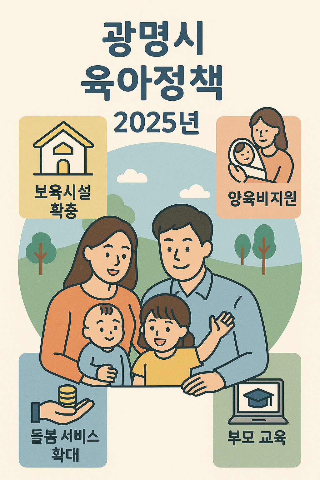 서울과 인접한 뛰어난 입지 조건 덕분에, 광명시는 젊은 가족들이 많이 정착하는 도시로 알려져 있습니다. 하지만 빠르게 변화하는 도시 환경 속에서 맞벌이 부부 증가와 육아 스트레스는 날로 심화되고 있습니다. 이에 발맞춰 광명시는 2025년을 기점으로 출산부터 양육, 부모참여까지 전 영역에 걸쳐 육아정책을 전면 재정비했습니다. 이번 글에서는 출산장려금, 보육지원, 부모참여라는 세 가지 핵심 키워드를 중심으로 광명시의 최신 육아정책을 자세히 살펴봅니다.